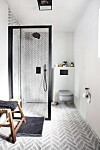 Hvite fliser på veggen og grå, sandfarget eller blå fliser på gulvet var standard lenge.